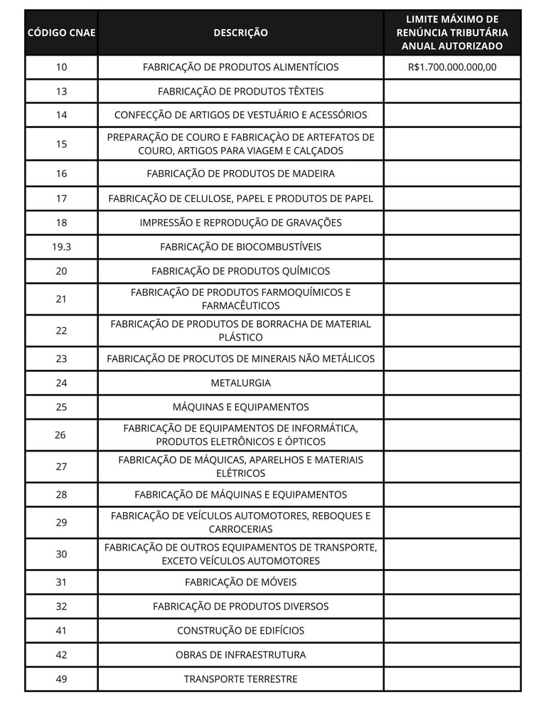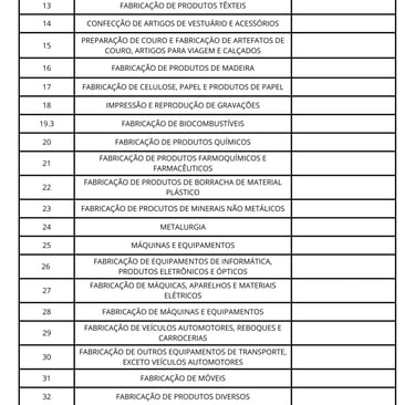 Lista de atividades econômicas da pessoa jurídica adquirente abrangidas pelas condições diferenciadas de depreciação acelerada de que trata o art. 1º, caput, inc. I, da lei nº 14.871/24.